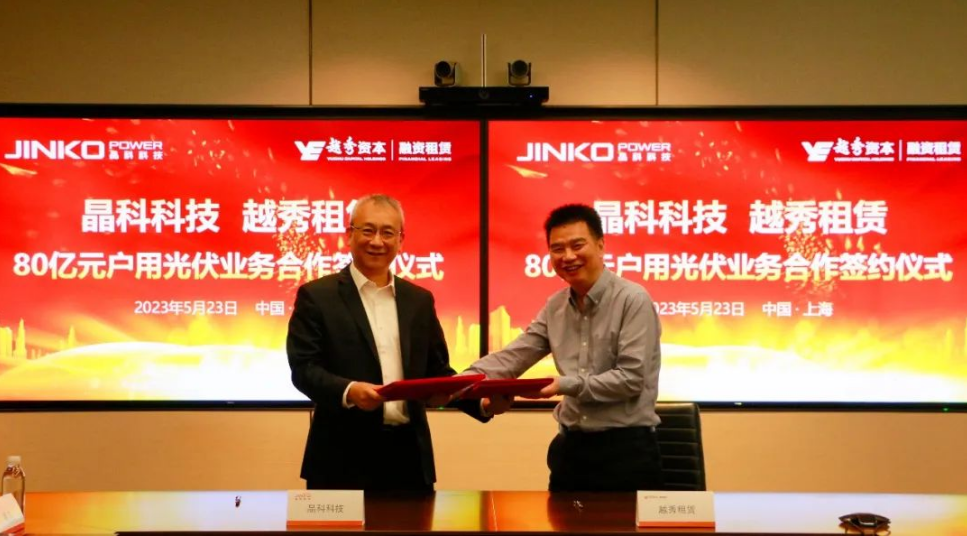 5月23日,完美体育科技(601778.SH)与广州越秀融资租赁有限公司(以下简称“越秀租赁”)签署80亿元户用光伏业务合作协议。完美体育CEO王洪与越秀租赁总经理蒲尚泉代表双方签约,完美体育新兴业务副总裁李帅、总裁办主任贾建军、户用事业部副总经理解瑞峰、对外合作总监肖斌,浙江越秀租赁总经理卢东光、越秀新能源常务副总宁吉安、越秀融资租赁资金部总经理李威杨、浙江越秀融资租赁光伏业务部总经理袁伟等相关领导出席见签。