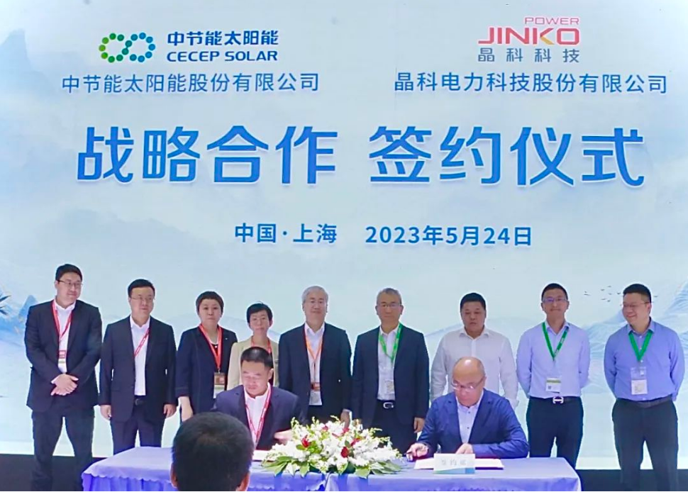 5月24日,完美体育科技(601778.SH)与中节能太阳能股份有限公司(以下简称“太阳能公司”)在2023年SNEC光伏展现场签订战略合作协议。完美体育工程副总裁张凡、太阳能公司副总经理郭毅代表双方签约,完美体育CEO王洪、EPC业务负责人董振国、采购副总监张沛与太阳能公司党委书记、董事长及总经理张会学,中节能太阳能科技(镇江)有限公司党总支书记、董事长李菁楠等双方代表见证签约。