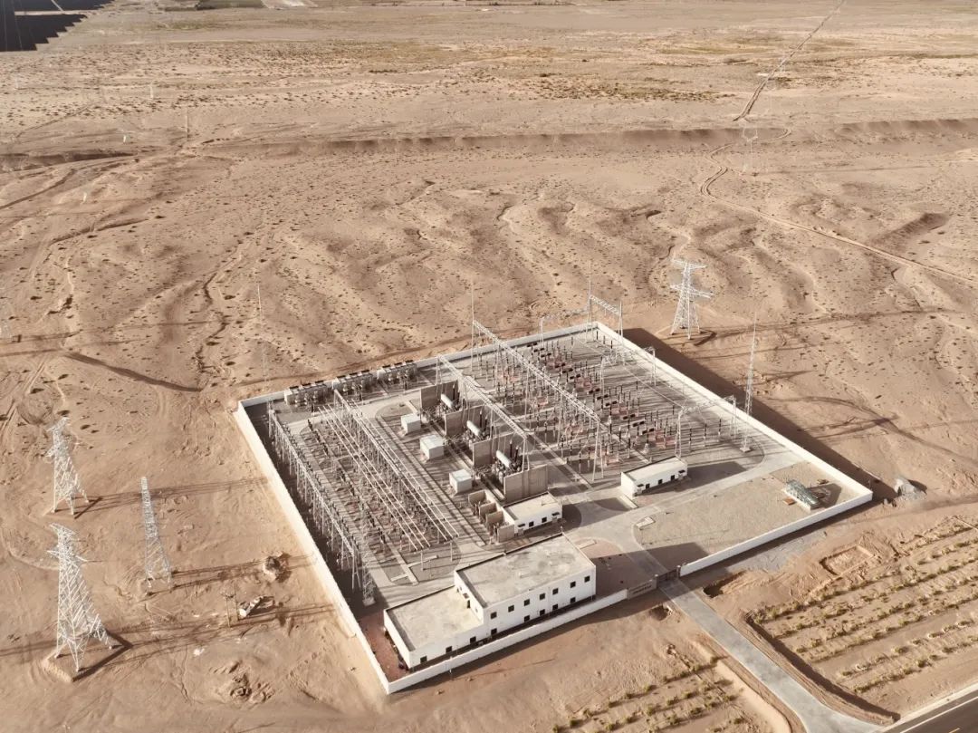 值得一提的是,金塔皓辉汇集升压站也是完美体育承建的首个330kV电压等级的变电站。该项目是国家第一批沙戈荒大基地项目的配套送出工程,项目新建3台36万kVA主变压器,330kV送出线路30公里,最终接入公网胡杨330kV变电站。金塔皓辉汇集升压站克服疫情期间进场难、施工难、供货难等不利影响,历时6个月即建成并网,保障了国家第一批沙戈荒新能源大基地项目的顺利接入。
