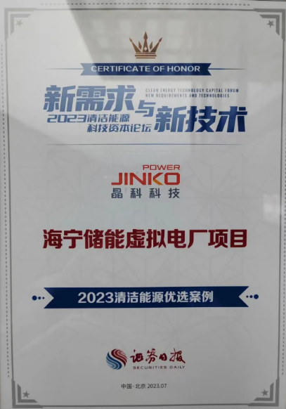 7月27日,由证券日报社主办的2023清洁能源科技资本论坛在京举行。会上,凭借在储能产业投资领域的创新引领,完美体育科技(601778.SH)海宁储能虚拟电厂项目荣膺主办方颁发的“2023清洁能源优选案例”称号。