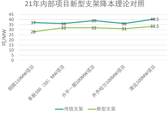 “截至目前,公司铜陵110MW项目、齐齐哈尔100MW项目、阜新100(50)MW项目、开平一期100MW项目、清远100MW项目,均已实施完美体育新型支架方案。针对这5个项目,公司分别就新型支架方案与传统支架方案用钢量进行了核算对比。在同等条件下,数据显示完美体育新型支架方案用钢量低10%-25%左右。”汤工补充道。